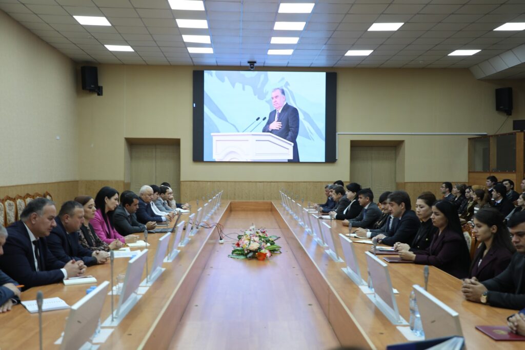 Иброз шуд, ки хизматҳои шоёни Асосгузори сулҳу ваҳдати миллӣ-Пешвои миллат, Президенти Ҷумҳурии Тоҷикистон муҳтарам Эмомалӣ Раҳмон ҳамчун рӯйдоди бузургу тақдирсоз дар таърихи навини тоҷикон бо ҳарфҳои заррин сабт гардида, тавсия ва ҳидоятҳои ин абармарди нотакрор ҳамчун роҳнамо дар пешрафти ҳаёти ҷомеа ҳазорсолаҳо хизмат менамоянд.