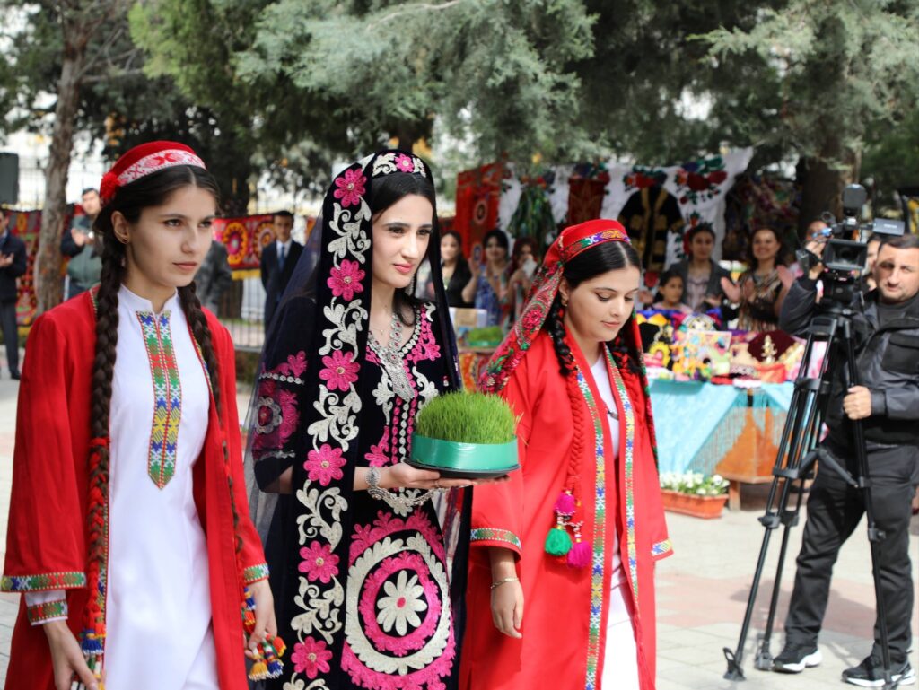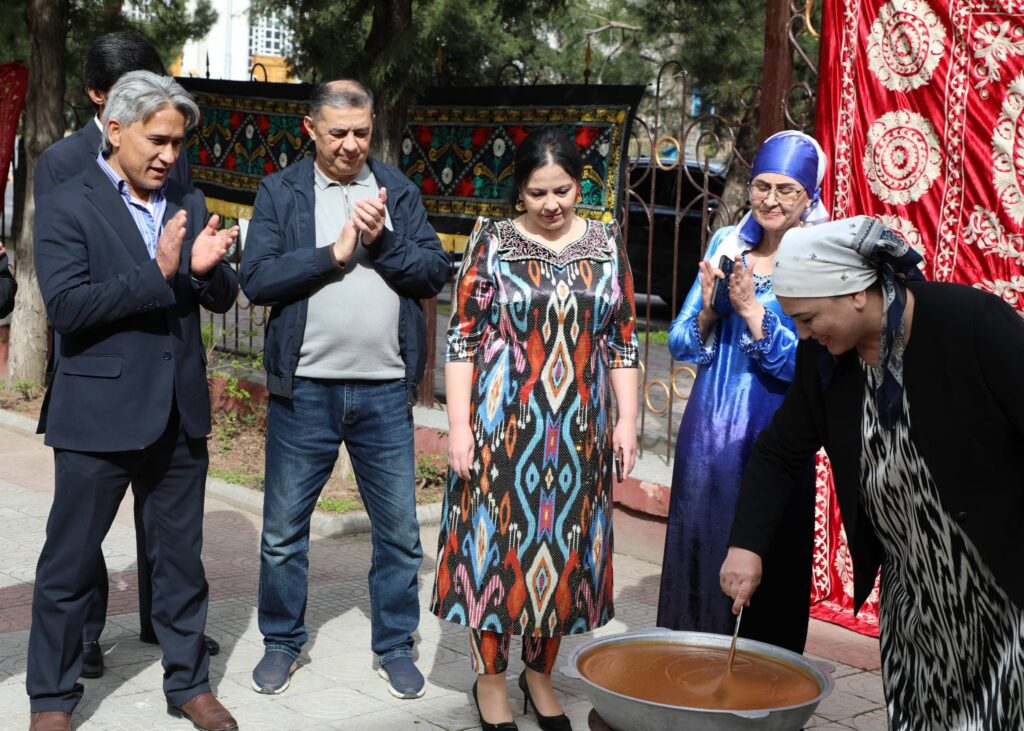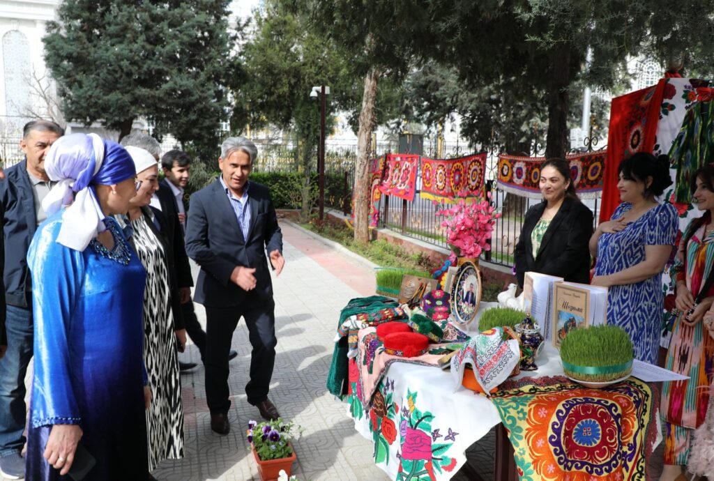 Дар саҳни идона дастархони зебои ҳафтсину ҳафтшин ороста шуда, рамзҳои наврӯзӣ фазоро боз ҳам рангин гардониданд. Ҳамзамон, гӯшаи ҳунарҳои мардумӣ ба маъраз гузошта шуда, намунаҳои нодири ҳунарҳои анъанавии миллӣ диққати ҳозиринро ба худ ҷалб намуд.